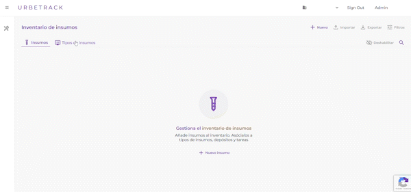 Módulo “Inventario de insumos”: Tipos de insumos
