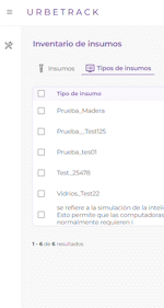 Ejemplo listado de tipos de insumos: