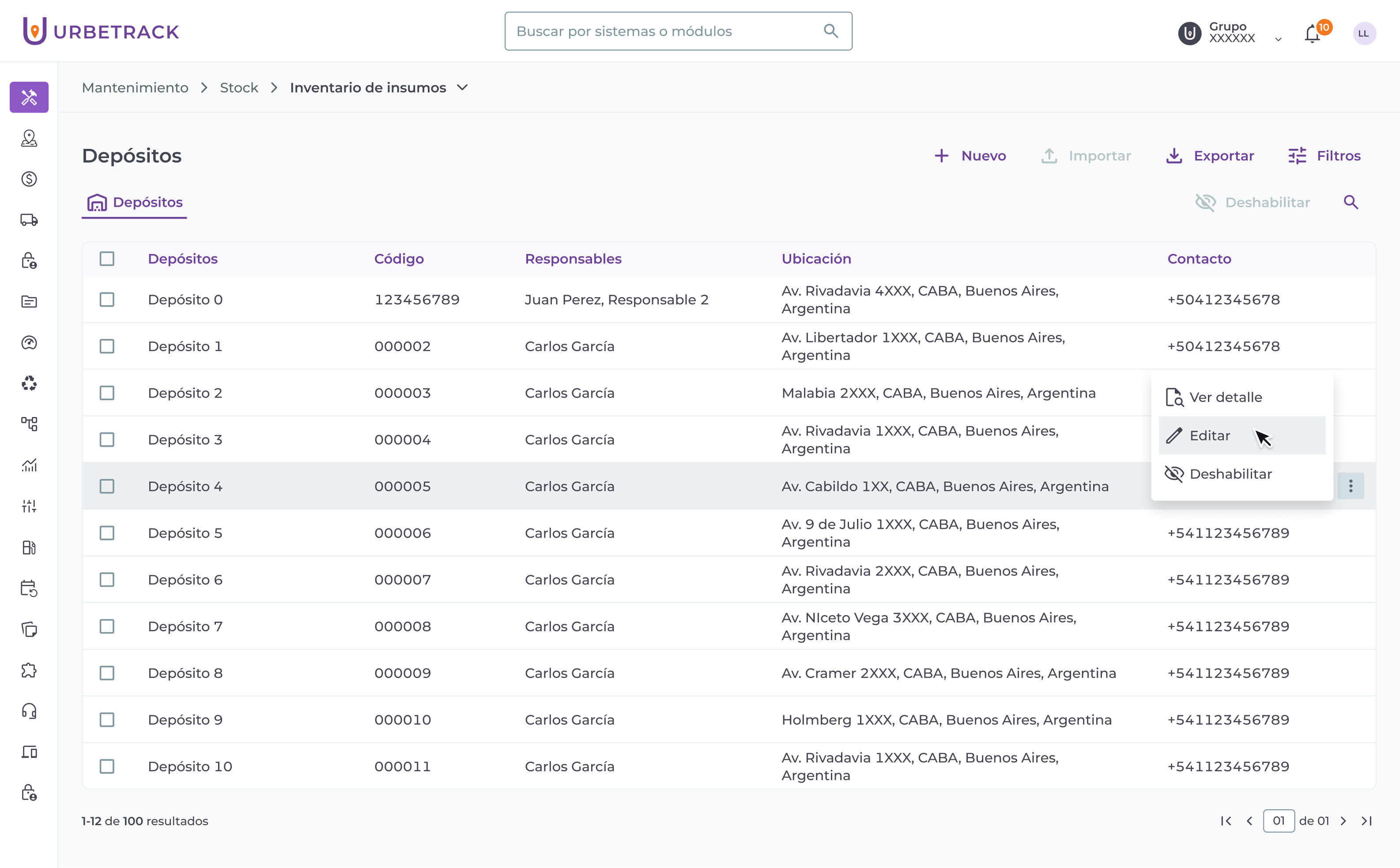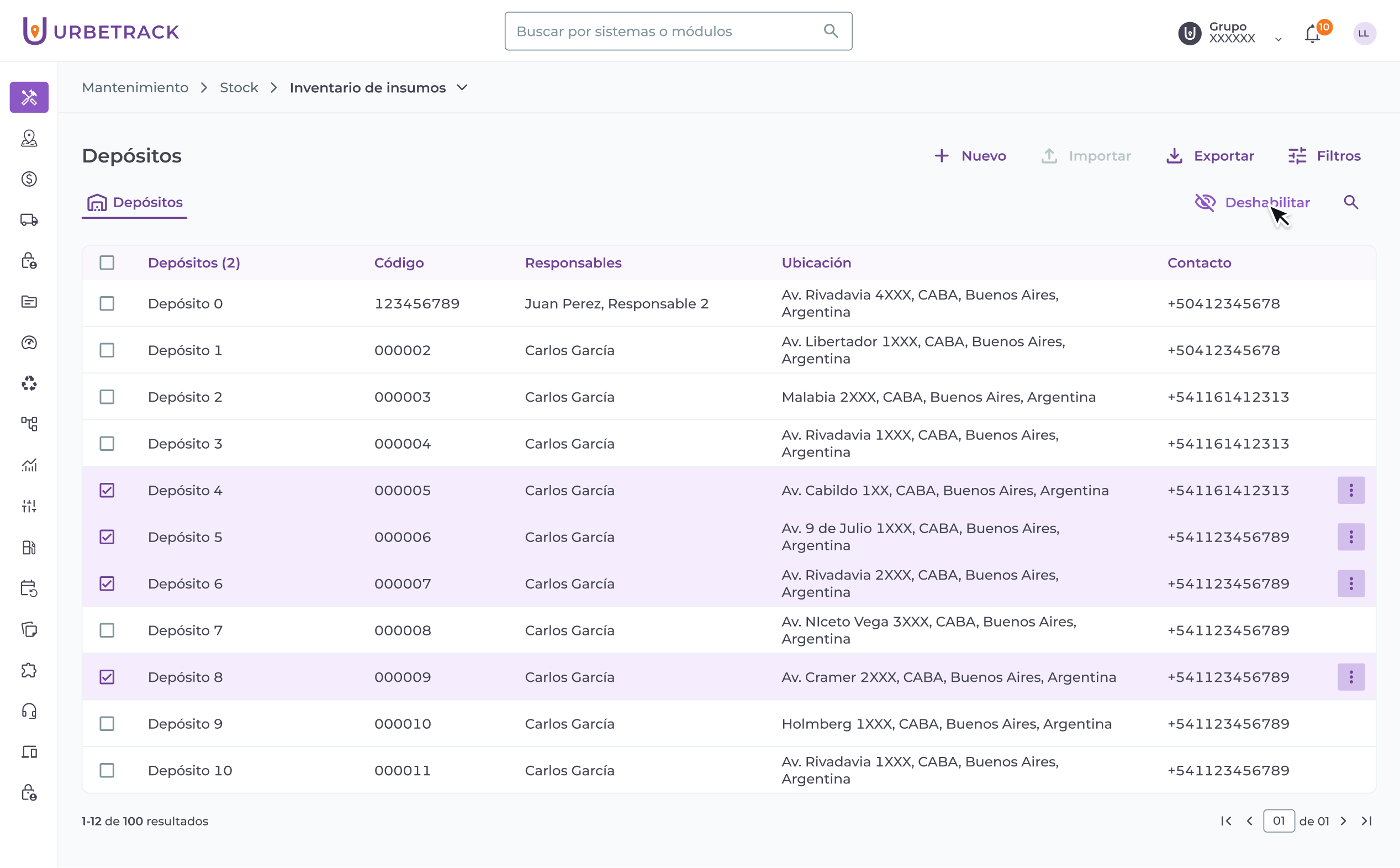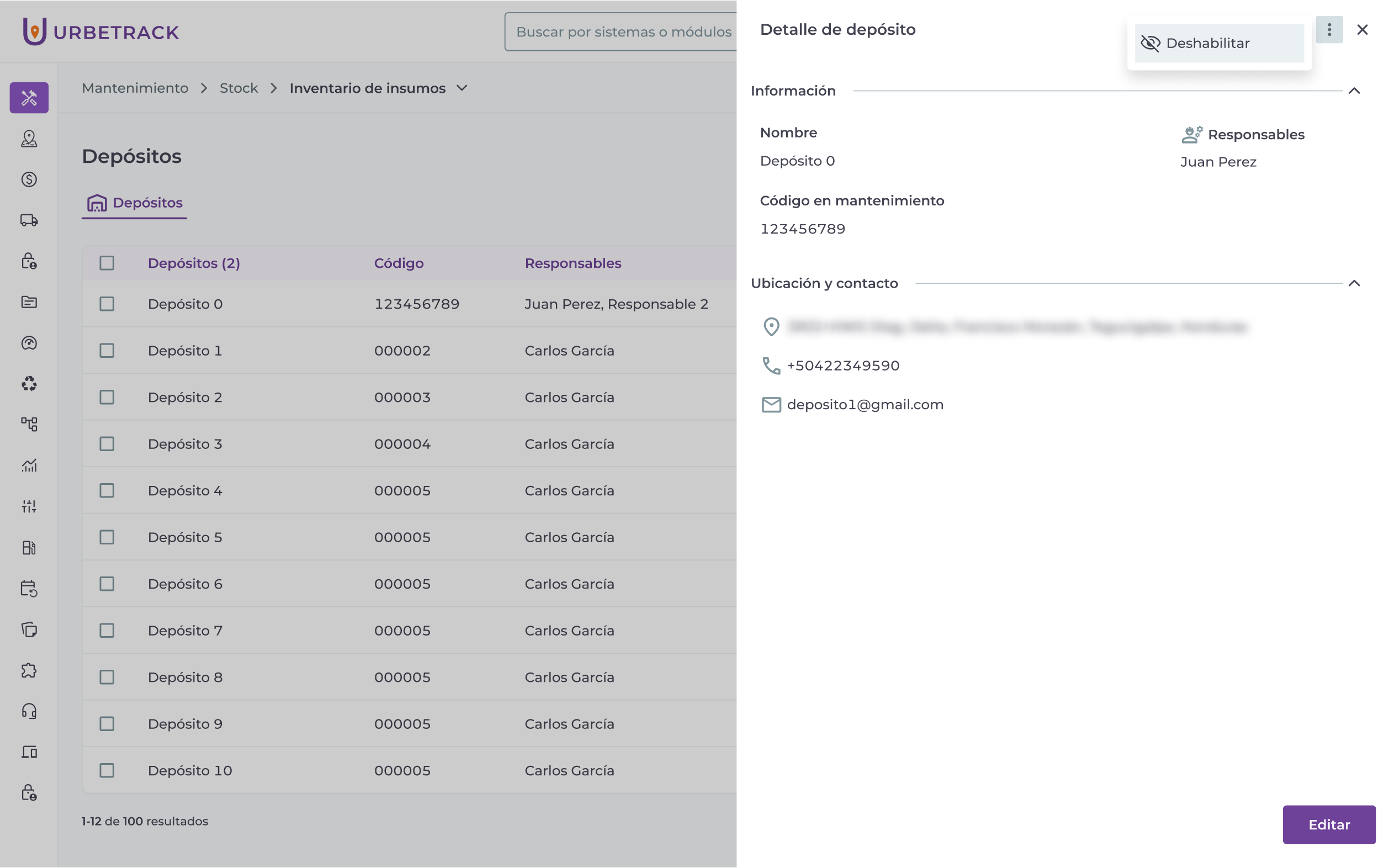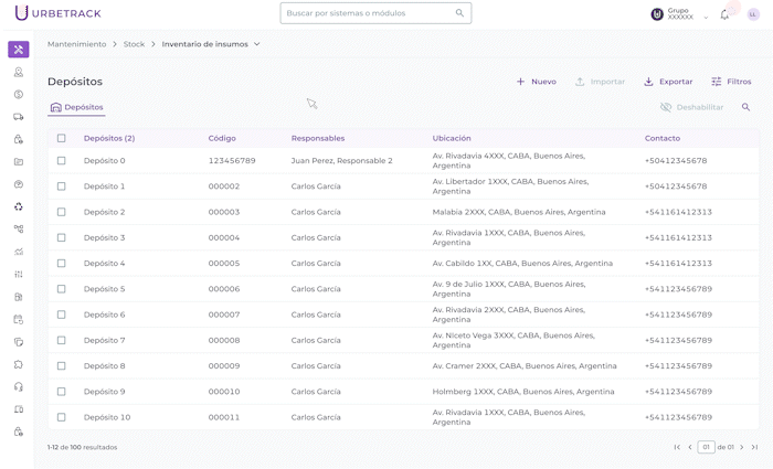 Importante: no podrás deshabilitar depósitos que estén asignados a OMs activas. Tampoco podrás deshabilitarlos si hay stock del insumo en los depósitos asociados.