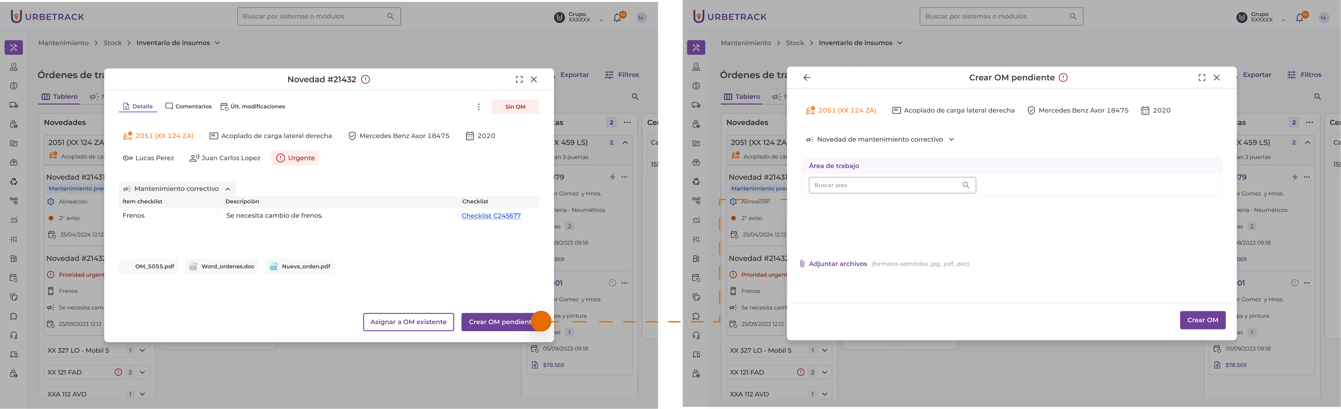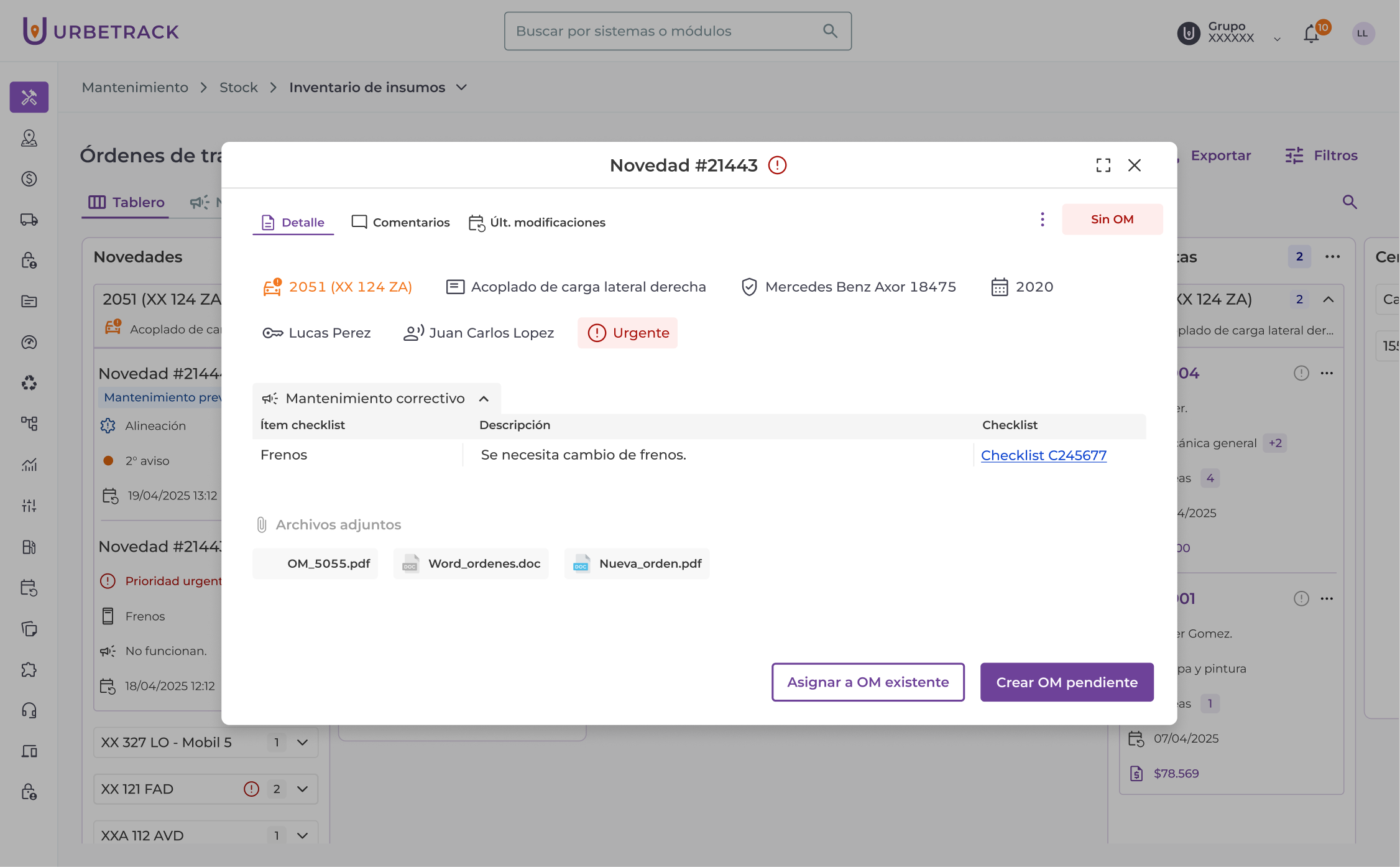 A partir de una Novedad puedes crear una OM en estado “pendiente” o asignar la novedad a una OM ya existente.