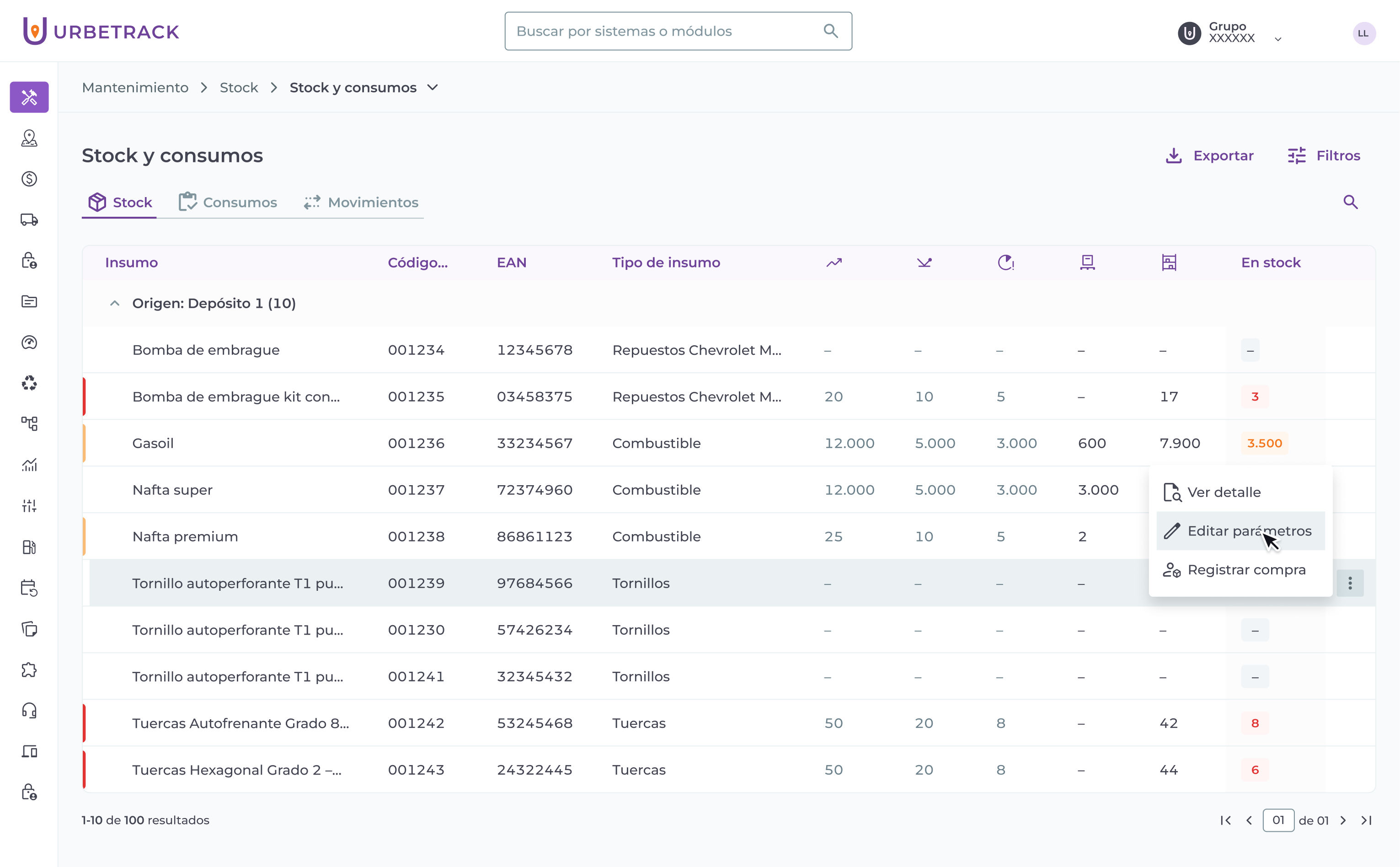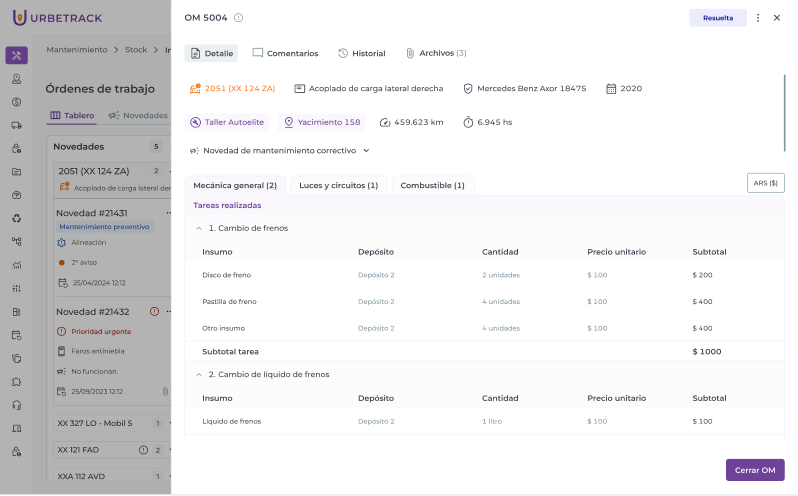 El módulo de Mantenimiento integró un sistema de stock mejorado, el que permite gestionar de manera eficiente los insumos necesarios para realizar las tareas de mantenimiento. Este sistema permite tener un control preciso sobre los repuestos e insumos utilizados en cada orden de trabajo, optimizando la disponibilidad de recursos y facilitando la trazabilidad de su uso.